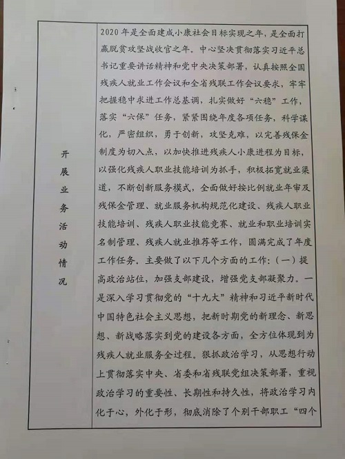 省殘疾人職業教育和就業服務2020年度事業單位年度報告書