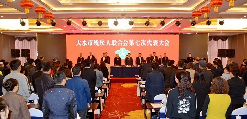 4月16日,天水市殘疾人聯合會第七次代表大會在天水賓館隆重開幕。省政協副主席、市委書記王銳,省殘聯黨組書記、理事長華文哲出席開幕式并講話。市人大主任蔣曉強、政協主席張明泰、組織部長王正茂、人大副主任王曉琴、政府副市長程偉東、政協副主席王振宇等出席會議。來自全市各行各業的殘疾人代表、殘疾人工作者、特邀代表、新聞媒體記者等共計200余人參加了會議。