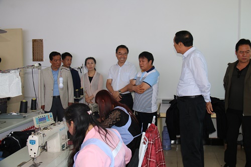 圖為省殘聯副理事長蔣錄基調研靈臺縣西屯鎮(zhèn)靈貿原制衣有限公司