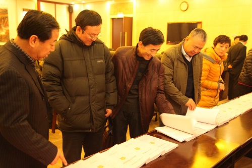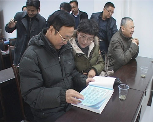 圖為省殘工委第三考核組組長省殘聯副理事長楊潤泉在臨夏州考核中查閱資料