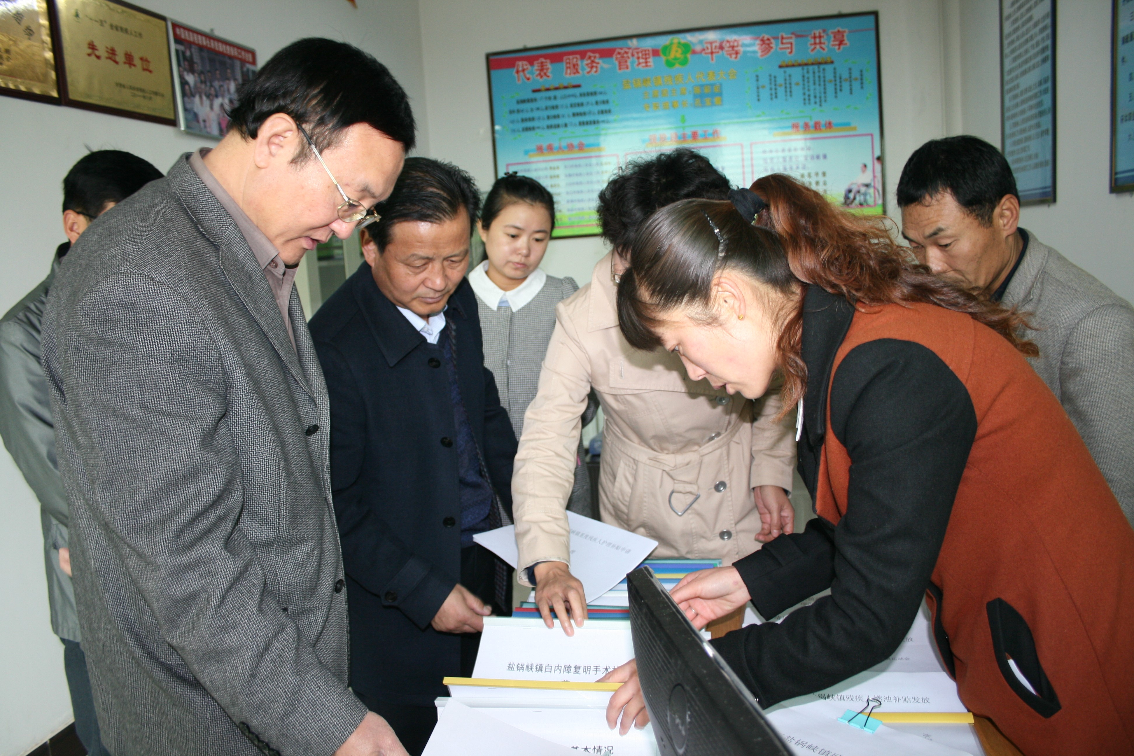 圖為實地查看鹽鍋峽鎮殘疾人工作