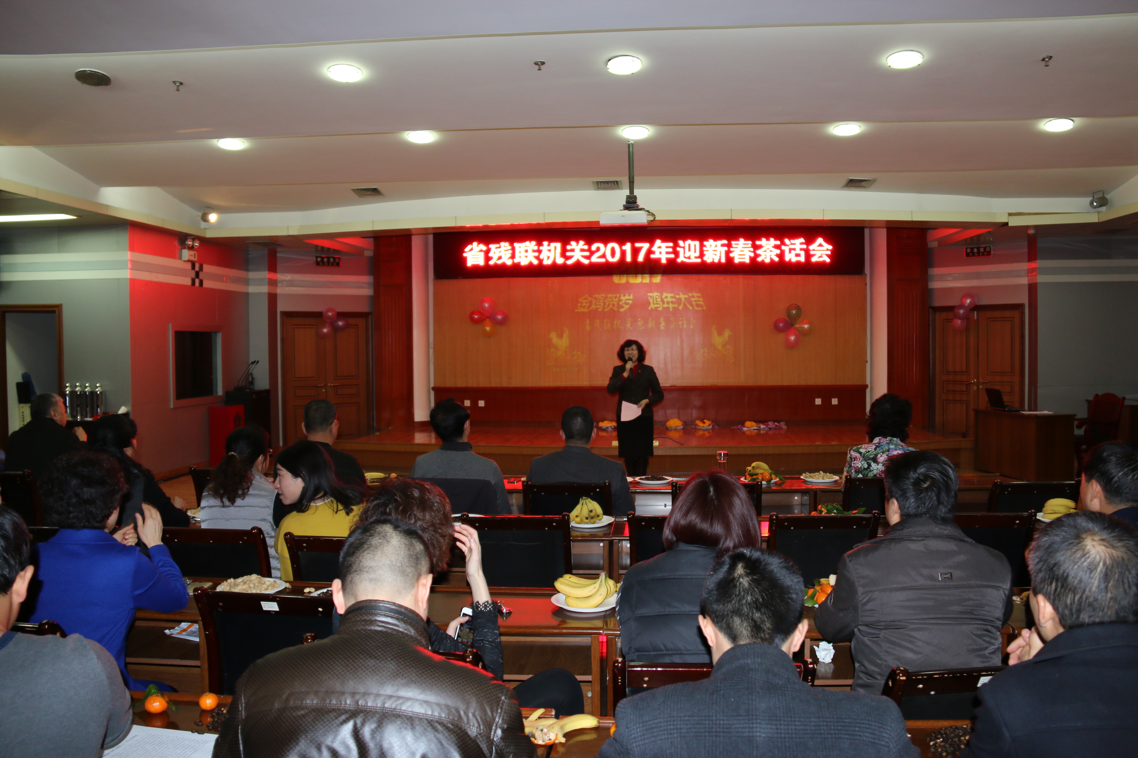 歡天喜地辭舊歲、滿懷信心迎新年。為慶祝新春佳節,促進職工文化生活,感受歡樂祥和的節日的氛圍,2017年1月20日下午,省殘聯機關召開迎新春茶話會。省殘聯機關全體工作人員和直屬單位副縣以上代表100余人參加了茶話會。