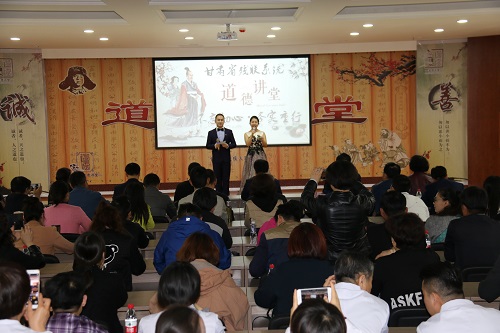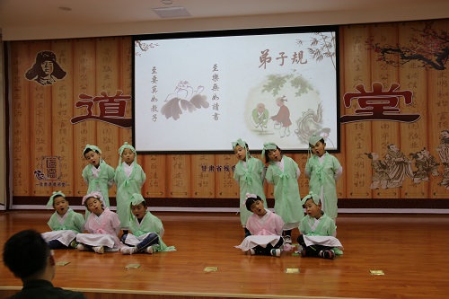 本期道德講堂的主題是“不忘初心,務(wù)實(shí)重行”,由“問自己、唱歌曲、學(xué)模范、誦經(jīng)典、談感悟、發(fā)善心、敬道德、送吉祥、做點(diǎn)評(píng)”等九個(gè)環(huán)節(jié)組成。活動(dòng)在舒緩安靜的音樂中開啟,首先進(jìn)行的是“問自己”環(huán)節(jié),大家捫心自問自己立足崗位、奉獻(xiàn)社會(huì)做的如何;接下來全體人員合唱《愛的奉獻(xiàn)》,觀看視頻短片,全國優(yōu)秀共產(chǎn)黨員廖俊波、優(yōu)秀特教老師吳玉芹兩位先進(jìn)典型在平凡的崗位上敬業(yè)奉獻(xiàn)的突出事跡,引起了大家心靈上的震撼。省聽力中心的孩子們和大家一起學(xué)習(xí)了《弟子規(guī)》和《荀子·修身》等傳統(tǒng)經(jīng)典,讓所有人都再次領(lǐng)略了國學(xué)經(jīng)典的魅力。