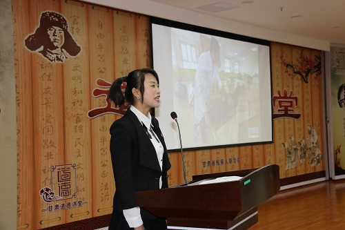 敬業(yè)奉獻(xiàn)的人不只在大屏幕里,也在我們的身邊。特教教師劉青蘭走上臺(tái),講述了她和同事們長期在特教戰(zhàn)線上愛心奉獻(xiàn)的心路歷程;特教教師包凌云聲情并茂地再現(xiàn)了在平凡的崗位上盡職盡責(zé)、奉獻(xiàn)聽障兒童的一個(gè)個(gè)感人瞬間。兩個(gè)在平凡工作崗位上同事,演繹的感人至深的故事,把道德講堂活動(dòng)推向了高潮。