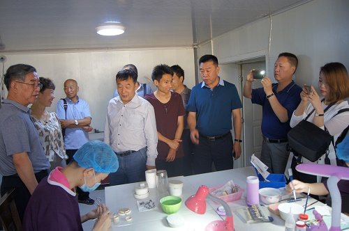 圖為在殘疾人集中就業基地榮光義齒制作中心考察