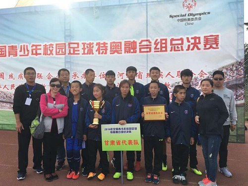 10月9日至15日由中國殘聯和教育部主辦,河北省殘聯、河北省教育廳和邢臺市殘聯承辦的2016年全國青少年校園足球特奧融合組總決賽在邢臺市舉辦,來自全國20個省、直轄市、自治區的21支代表隊,近500多人參加了比賽。賽事分南、北賽區進行,每個賽區分A組和B組,代表我省參賽的酒泉市特殊教育學校的10名特奧融合運動員和4名教練員參加了比賽。