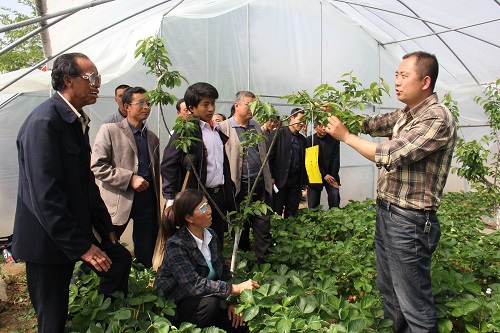 圖為培訓班學員現場學習大櫻桃栽培技術