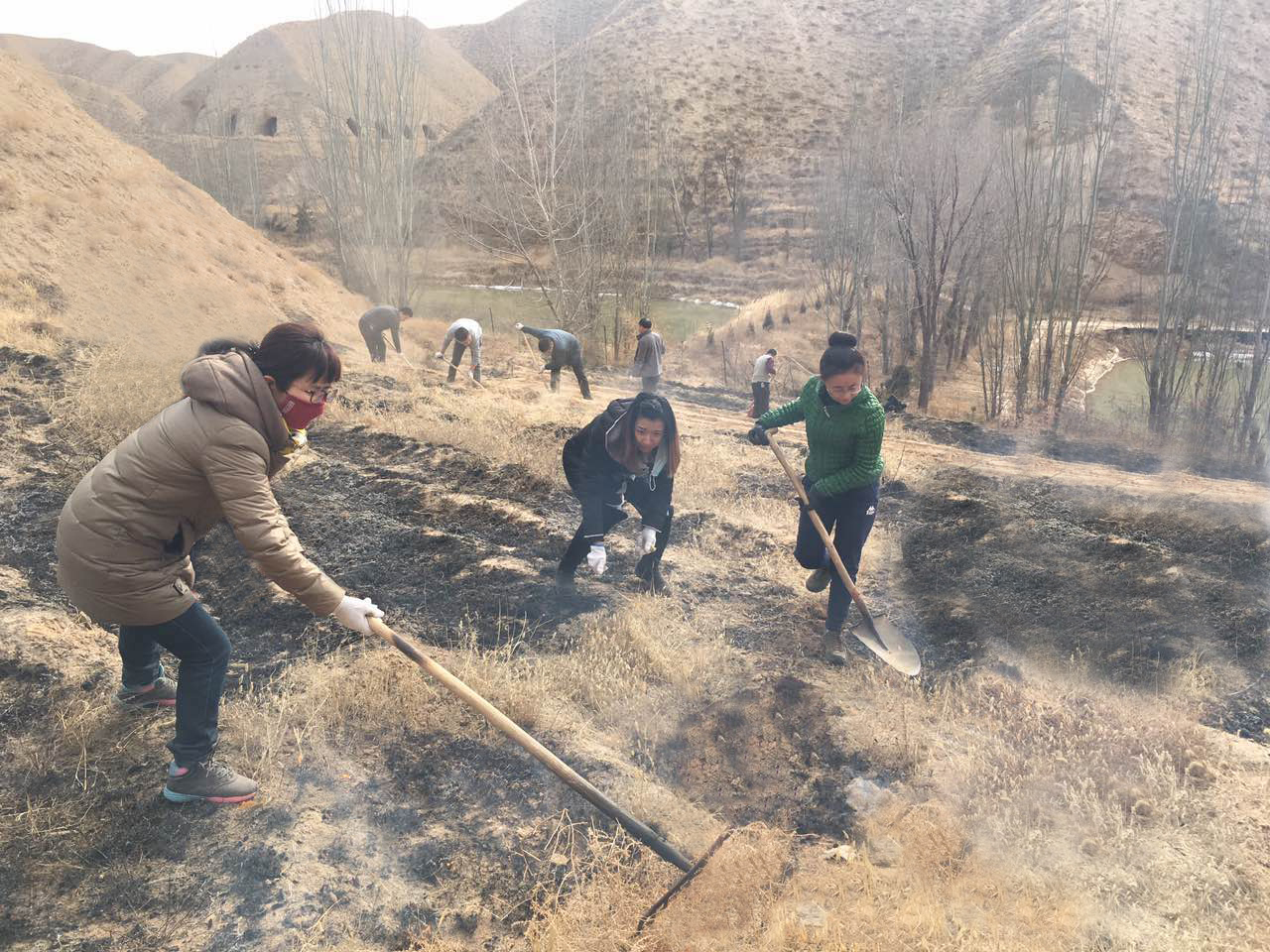 為確保2017年度省殘聯(lián)系統(tǒng)義務(wù)植樹順利開展,農(nóng)科中心早規(guī)劃、早部署,認(rèn)真做好各項(xiàng)準(zhǔn)備工作。2月底,中心負(fù)責(zé)人提早入手、實(shí)地踩點(diǎn),選定了植樹地點(diǎn)。3月6日起,農(nóng)科中心組織全體干部職工進(jìn)行為期三天的勞動(dòng),開荒山、平場地,在選定的荒山坡上掀起了一場綠化荒山的攻堅(jiān)戰(zhàn)。雖然已經(jīng)開春,但天氣仍比較寒冷,坡上刮著大風(fēng),到處塵土飛揚(yáng),但這絲毫沒有降低中心干部職工勞動(dòng)的熱情,大家你爭我趕,比速度、比質(zhì)量,勞動(dòng)現(xiàn)場充滿歡聲笑語,呈現(xiàn)出一片熱火朝天的景象。尤其在“三八”國際婦女節(jié)來臨之際,中心女同志巾幗不讓須眉的精神風(fēng)貌更是構(gòu)筑了一道絢麗的風(fēng)景線。同時(shí),為保證植樹活動(dòng)有序開展,中心對植樹期間的場地分配、工具發(fā)放、宣傳報(bào)道及后勤保障等具體細(xì)節(jié)責(zé)任到人,確保準(zhǔn)備工作無疏漏。