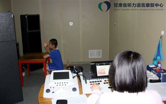 ?。▓D為受助者接受聽力測(cè)試)