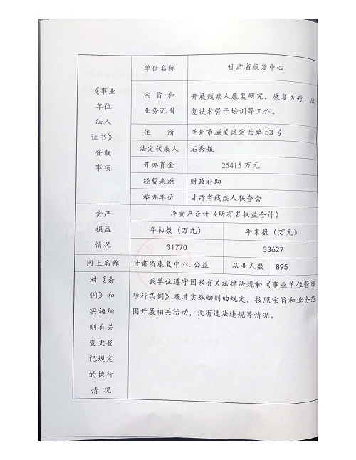 省康復中心事業(yè)單位法人報告