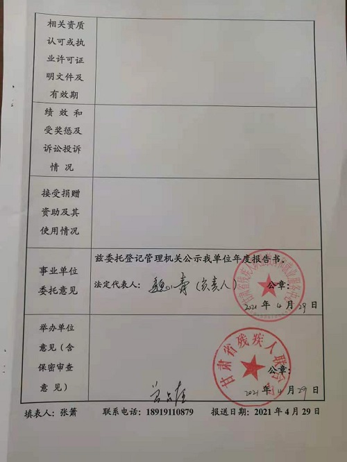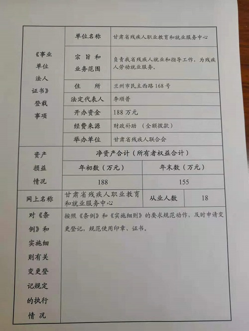 省殘疾人職業教育和就業服務2020年度事業單位年度報告書