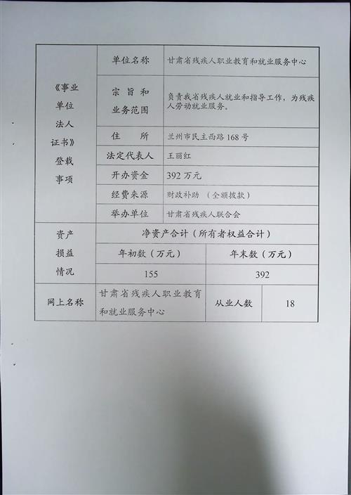 2021甘肅省殘疾人職業教育和就業服務中心事業單位法人年報