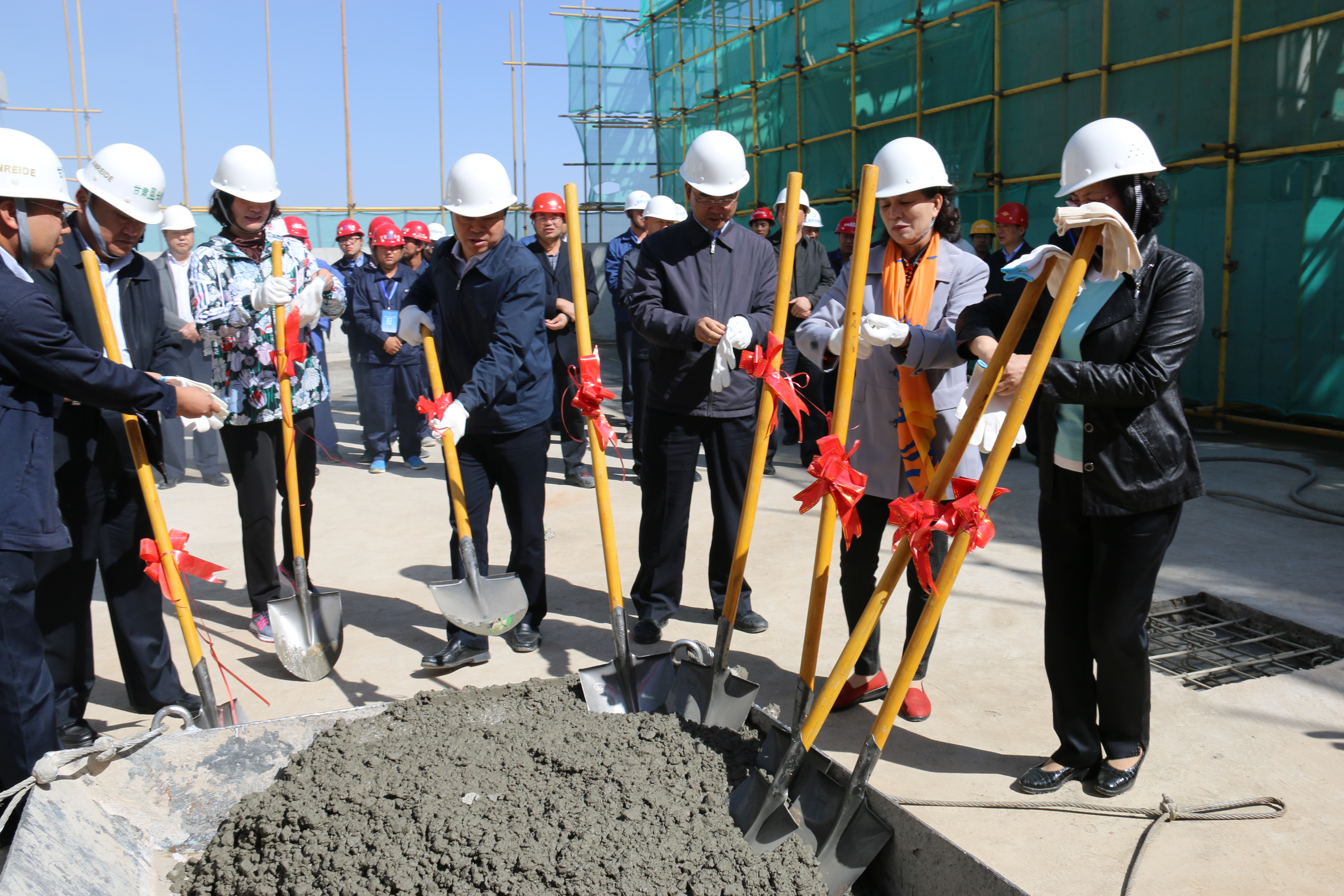9月29日上午,位于蘭州新區的省殘疾人綜合服務基地建設再傳捷報。隨著省康復中心醫院院住部樓頂最后一塊混凝土澆筑完成,康復中心醫院主體工程的順利封頂,標志著省殘疾人綜合服務基地建設任務邁上新臺階,也標志著省康復中心醫院工程建設取得了重要的階段性勝利,將由土建主體結構轉入裝飾裝修階段。省殘聯黨組書記、理事長華文哲,黨組成員、副理事長蔣錄基、吳小萍、張秀麗,副巡視員李少惠及長城建設集團、藍野建設監理公司等施工監理單位高級管理層出席封頂儀式。