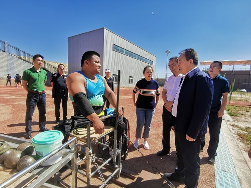 王建強一行首先來到田徑訓練場和室內訓練館,認真觀看了隊員們的訓練,與運動員和教練員悉心交談,詳細了解運動員訓練安排、疫情防護、學習生活等方面情況。希望教練員認真學習貫徹習近平總書記“七一”重要講話,科學制定訓練計劃、合理安排作息時間,關心好運動員的健康和生活。叮囑運動員要注意飲食和休息,保持良好衛生習慣、做好個人疫情防護,以最佳的身心狀態投入沖刺訓練、提升競技水平。要求省殘聯有關部門單位要盡最大可能為我省備戰全國第十一屆殘運會提供必要的支持和保障。