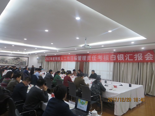 根據省政府殘工委統一部署,12月25日至29日,省婦聯副主席董曉玲帶領省政府殘工委第七考核組,赴武威市和白銀市考核2017年殘疾人工作目標管理責任完成情況,并走訪慰問了部分貧困殘疾人家庭。武威市政府副市長李成日,市殘聯理事長王賢德;白銀市政府副市長吳震,市殘聯理事長王重玲等陪同考核,市政府殘工委成員單位負責人及縣區殘聯理事長參加了匯報會。