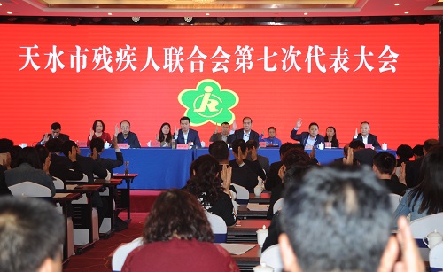 4月16日,天水市殘疾人聯合會第七次代表大會在天水賓館隆重開幕。省政協副主席、市委書記王銳,省殘聯黨組書記、理事長華文哲出席開幕式并講話。市人大主任蔣曉強、政協主席張明泰、組織部長王正茂、人大副主任王曉琴、政府副市長程偉東、政協副主席王振宇等出席會議。來自全市各行各業的殘疾人代表、殘疾人工作者、特邀代表、新聞媒體記者等共計200余人參加了會議。