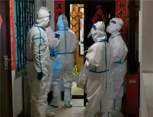 圖為醫護人員和志愿者為綜合樓內住戶上門開展核酸檢測