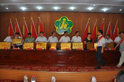 圖為出席會議領導為隴南市扶殘助殘先進集體頒獎