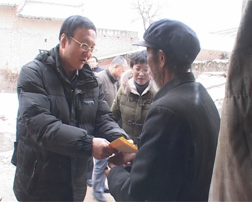 圖為省殘工委第三考核組臨夏州和政縣考核中慰問貧困殘疾人家庭