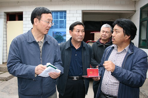 圖為檢查組檢查特困補貼發(fā)放情況