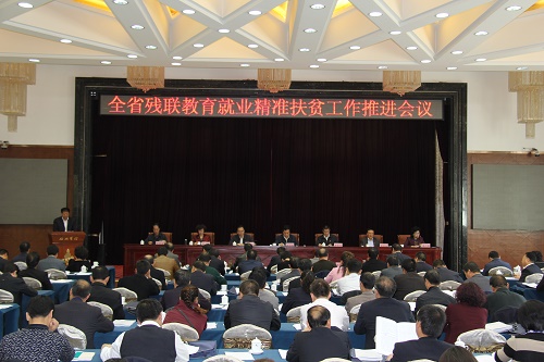 這次會議是在全省上下深入貫徹十八屆五中全會精神、中央扶貧開發工作會議和全省精準扶貧有關會議精神,精心謀劃“十三五”開局,全力實施精準扶貧、精準脫貧,加快推進殘疾人小康進程的重要階段,首次以省殘聯黨組理事會名義召開的全省殘聯教育就業精準扶貧工作推進會議,旨在統一思想、凝聚共識,明確任務、傳導壓力,進一步研究新常態下加快殘疾人教育就業工作和精準扶貧的新思路、新舉措。