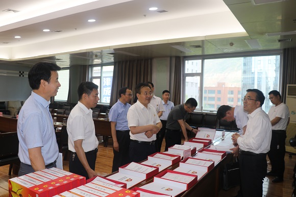 隨后曾國俊一行查看了省殘聯2021年黨建工作和黨史學習教育資料。