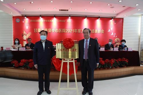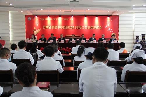 王建強對中心(醫(yī)院)順利通過“三甲”復(fù)審表示熱烈祝賀,并和中心(醫(yī)院)黨委負(fù)責(zé)人王登廷為“三級甲等康復(fù)醫(yī)院”揭牌;宋保才和中心(醫(yī)院)行政業(yè)務(wù)負(fù)責(zé)人王建云為“2022新甘肅最具滿意度三甲醫(yī)院”揭牌。會議對榮獲2021年度全省抗擊新冠肺炎疫情先進個人和先進集體進行表彰;對榮獲中心2021年度先進科室和優(yōu)秀等次人員、“三甲”評審工作先進個人、抗疫先進個人頒發(fā)了獎狀、獎牌。王登廷、王建云分別作了2021年黨委、行政工作報告;中心(醫(yī)院)班子成員分別與各科室簽訂了2022年度目標(biāo)責(zé)任書。