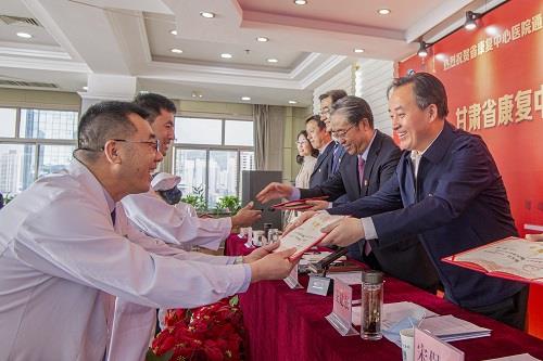 圖為省殘聯(lián)黨組成員、副理事長宋保才為“2022年新甘肅最具滿意度三甲醫(yī)院”揭牌