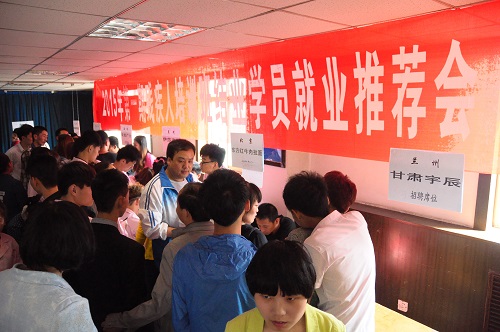 5月29日,2015年省級殘疾人第一期培訓班結業學員就業招聘會,在省殘疾人培訓基地甘肅五泉職業培訓學校如期舉行。省殘聯副理事長楊潤泉、省殘聯紀檢組長吳小萍親臨現場指導招聘工作。楊潤泉副理事長鼓勵參加應聘的殘疾人學員要抓住機遇,積極應聘,爭取找到適合自己的工作崗位,實現穩定就業的愿望。紀檢組長吳小萍鼓勵大家要樹立自尊、自信、自強、自立的精神,用學到的知識,在就業崗位上實現人生價值。