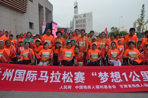 6月11日上午7:30分,2016蘭州國(guó)際馬拉松賽在正式在蘭州鳴槍開(kāi)賽。由55名殘疾人和45名陪護(hù)人員組成的特殊“跑團(tuán)”,受到了賽道沿途群眾的熱情助威和點(diǎn)贊,成為此次蘭馬賽一道獨(dú)特的風(fēng)景。