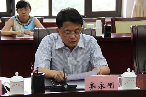 圖為白銀市委常委、常務副市長、省籌委會執行副主任齊永剛匯報白銀市承辦殘運會工作總體方案