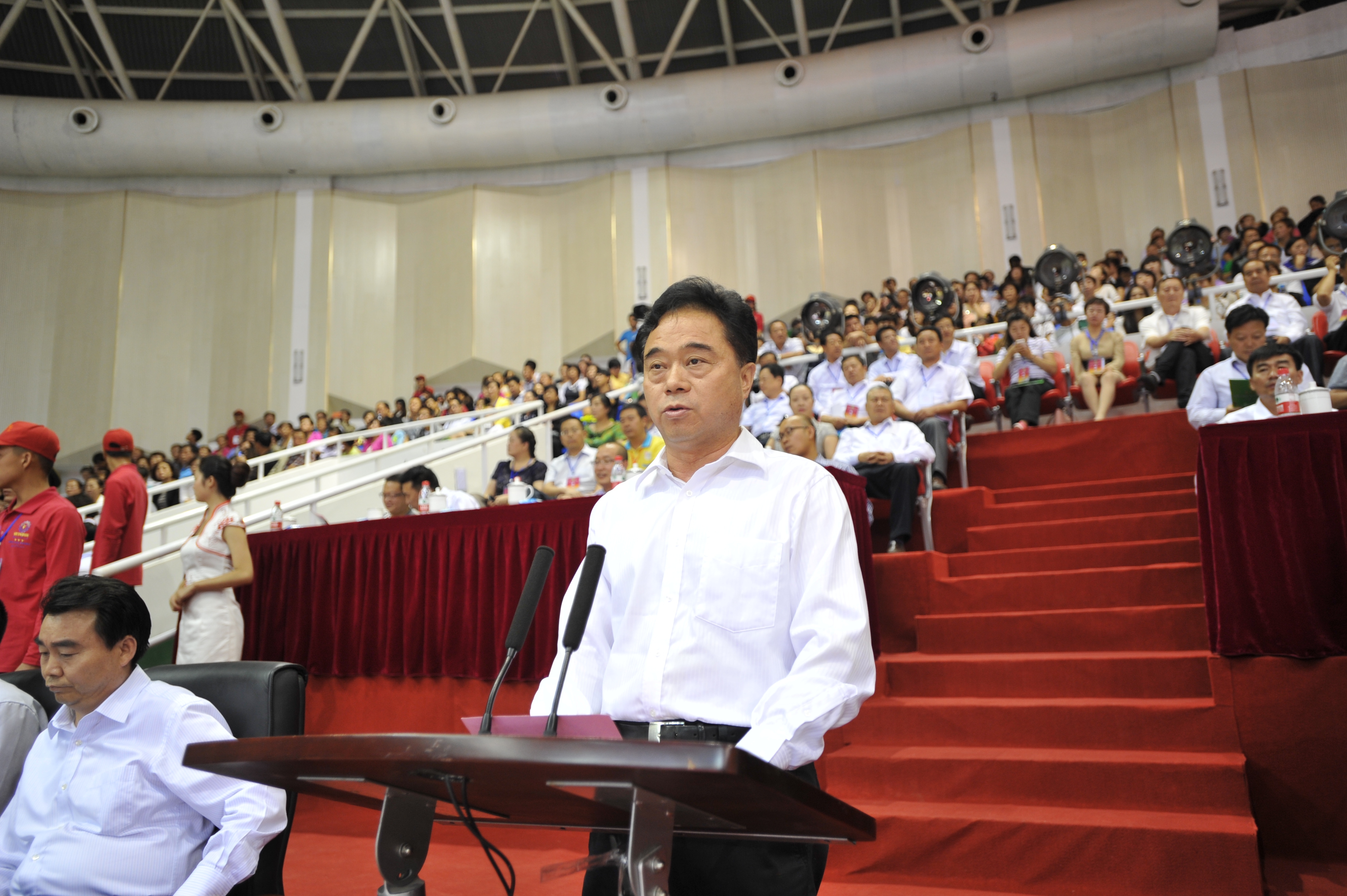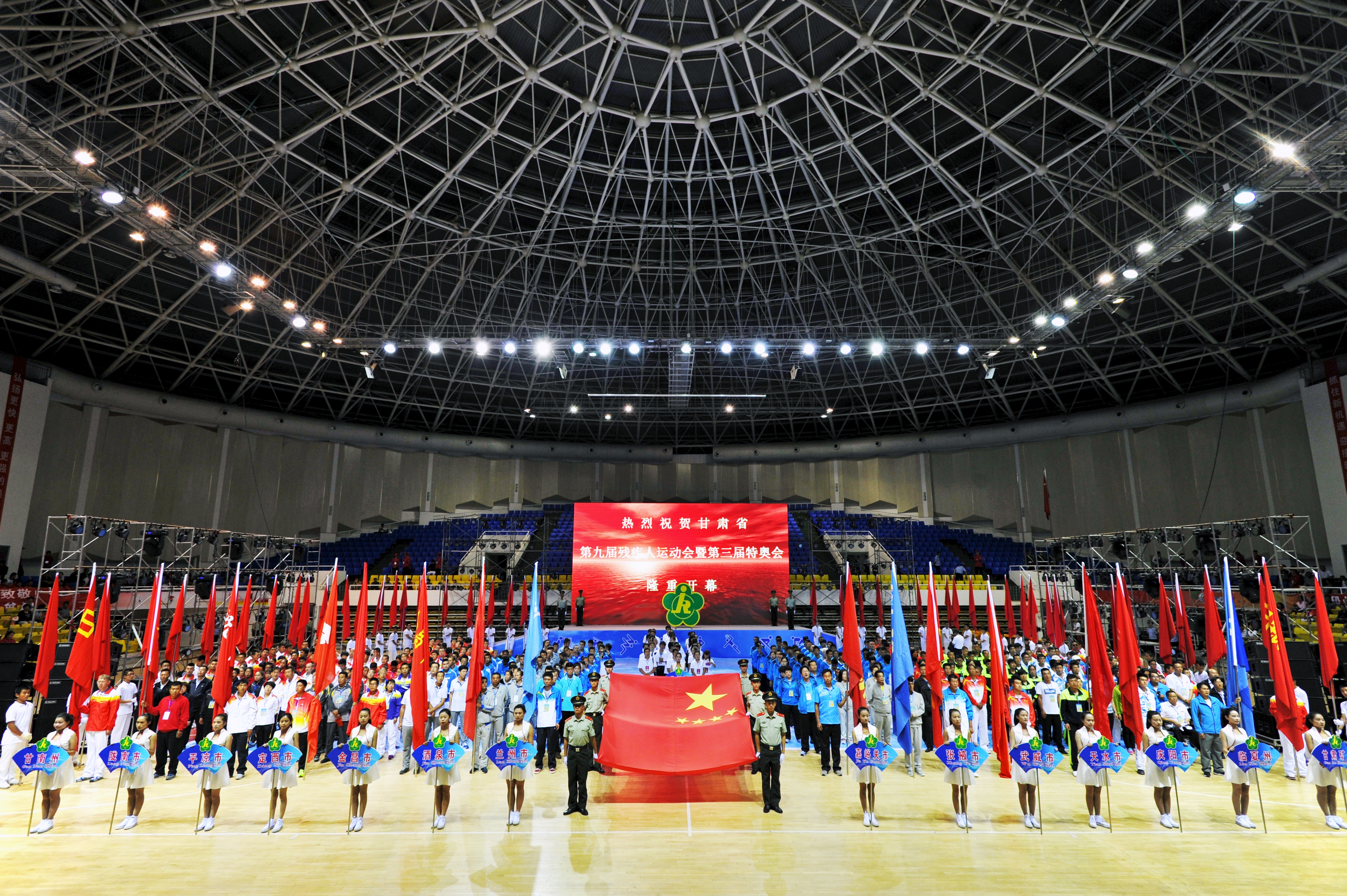 8月29日晚,全省第九屆殘疾人運動會暨第三屆特奧運動會在白銀市隆重開幕。省委常委、省委政法委書記澤巴足宣布運動會開幕,省委常委、副省長、組委會主任咸輝講話,省人大常委會副主任李慧、省政協副主席張景輝出席開幕式;組委會副主任、白銀市委書記張智全代表主辦單位致歡迎辭,組委會執行主任、省殘聯理事長華文哲宣讀中國殘聯和國家體育總局賀信,組委會執行主任、省體育局局長楊衛致開幕辭,組委會執行主任、白銀市委副書記、市長汪海洲主持開幕式。省直有關部門負責同志、各代表團團長、參賽運動員、教練員、裁判員、志愿者、新聞媒體記者及社會各界代表共2000余人參加開幕式。