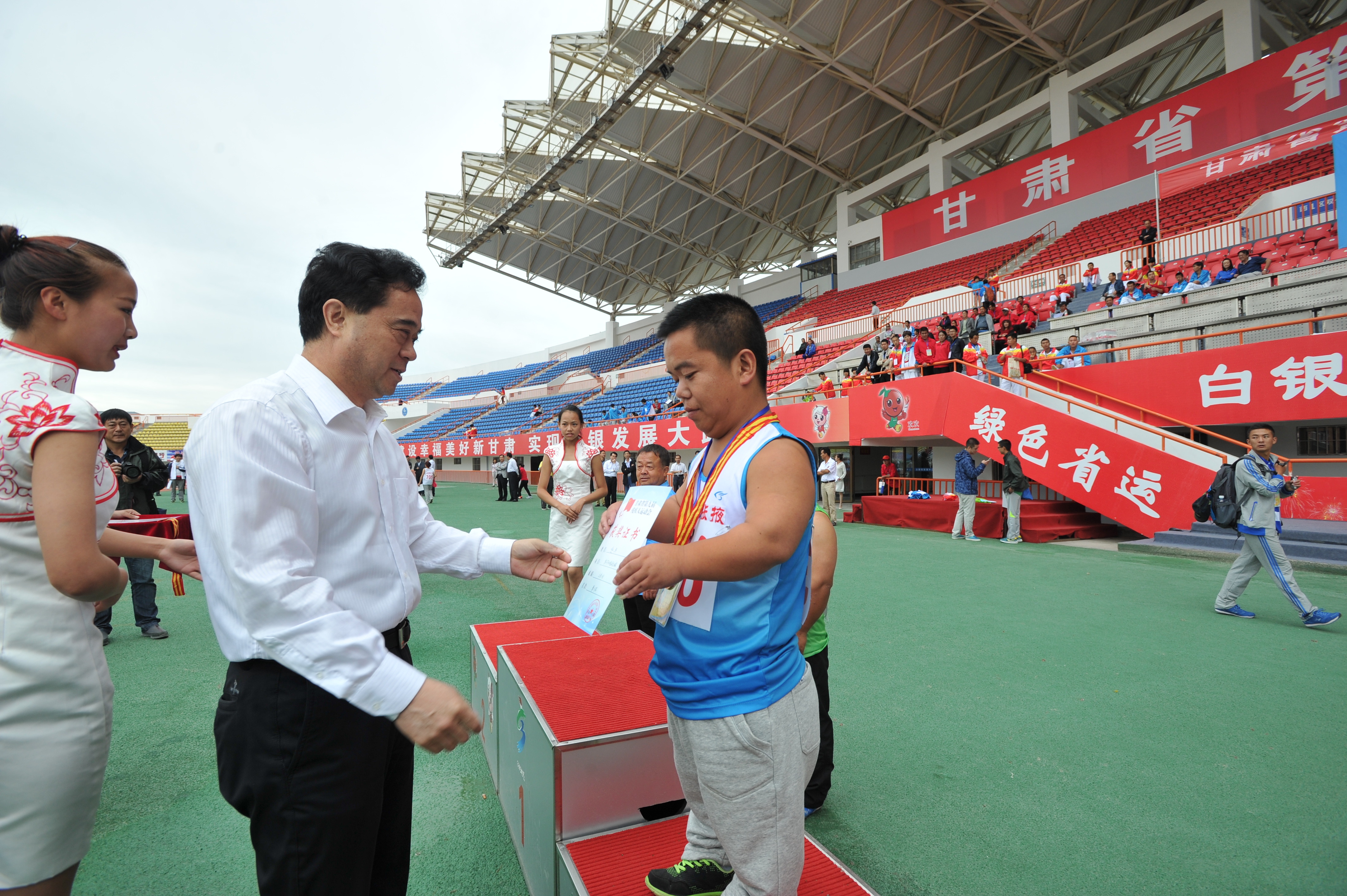省政府副秘書長、組委會(huì)副主任張正鋒,組委會(huì)執(zhí)行主任、省殘聯(lián)理事長華文哲,組委會(huì)執(zhí)行主任、白銀市委副書記、市長汪海洲分別為獲得前三金的運(yùn)動(dòng)員頒獎(jiǎng)。他們勉勵(lì)獲獎(jiǎng)運(yùn)動(dòng)員,繼續(xù)保持高昂的斗志和頑強(qiáng)的毅力,發(fā)揚(yáng)“更快、更高、更強(qiáng)”的奧運(yùn)精神和身殘志堅(jiān)、不屈不撓的自強(qiáng)精神,再接再厲、再創(chuàng)佳績,并鼓勵(lì)他們積極參與社會(huì)生活,努力實(shí)現(xiàn)人生價(jià)值,為普及繁榮殘疾人體育、加快推進(jìn)殘疾人事業(yè)作出應(yīng)有努力和貢獻(xiàn)。