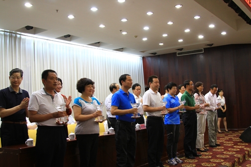 圖為獲得獎(jiǎng)牌榜前八名的代表團(tuán)代表領(lǐng)獎(jiǎng)