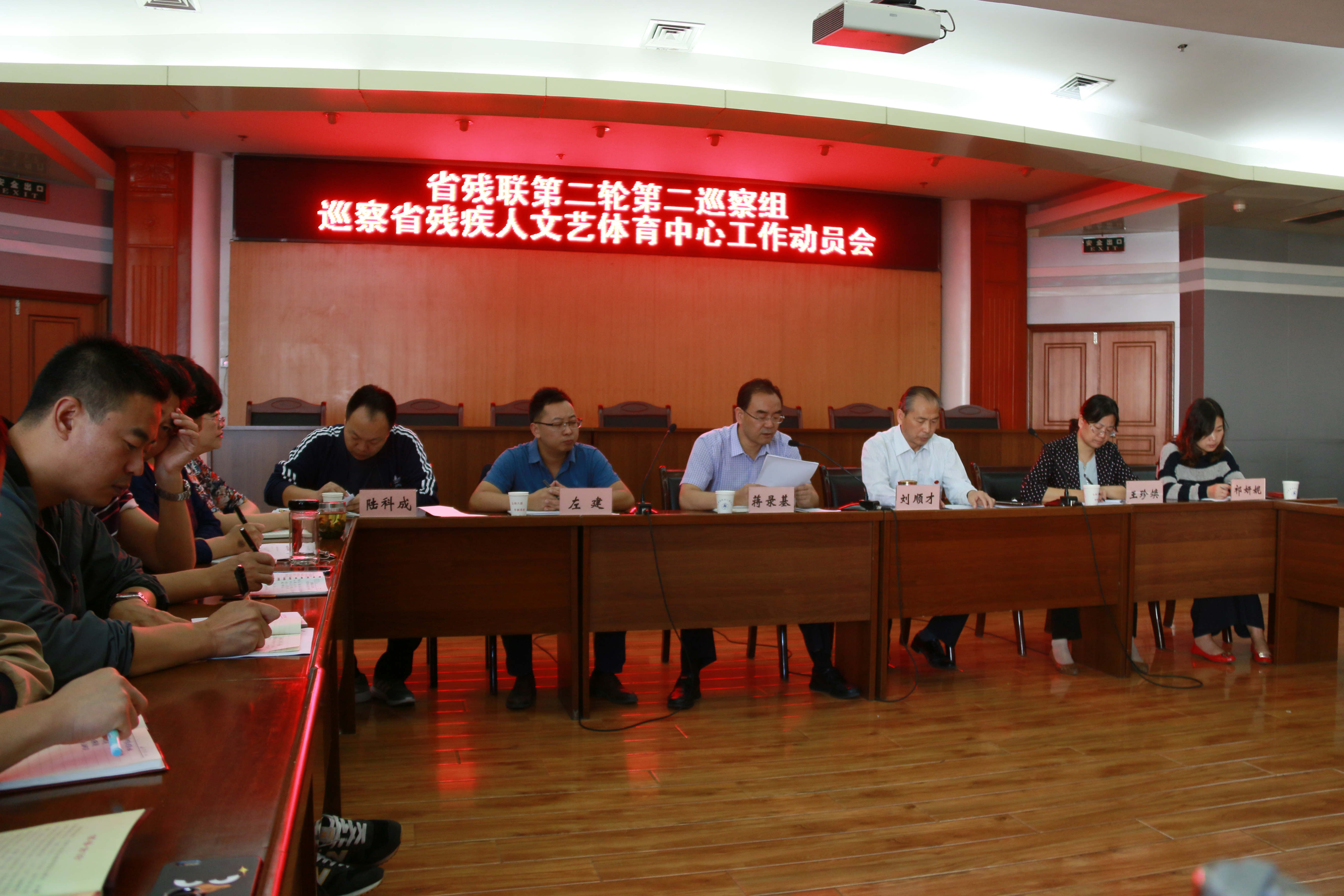 9月8日上午,省殘聯第二輪第二巡察組巡察文體中心工作動員會召開,省殘聯黨組成員、副理事長、巡察組組長蔣錄基、省殘聯機關紀委書記、巡察組副組長劉順才、省紀委派駐省民政廳紀檢組主任科員、巡察組成員左建等出席會議,文體中心全體干部職工參加會議。