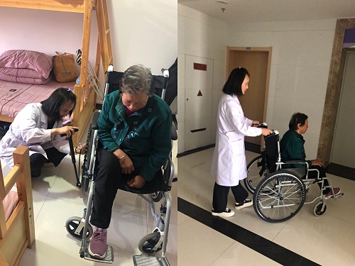 馬某來到省輔具中心在辦理入院時,病房服務室工作人員見她拄著陳舊的拐杖,身體狀況欠佳,行動極為不便,需要家人無時無刻的陪同,隨即免費為她提供了一輛輕便的輪椅,馬某高興的說:“還是共產黨的政策好,不但免費安裝假肢,還免費提供食宿和輪椅,真是幫了我大忙啊!”在住院期間,馬某使用的輪椅突然出現故障導致她無法正常行動,家屬趕忙找到病房服務室工作人員焦急的反應情況,工作人員仔細檢查輪椅后,發現輪胎已漏氣無法推行,但找到之前的舊打氣筒已損壞無法使用,而周邊商店均未出售合適的打氣筒。