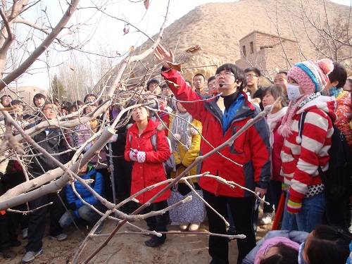 圖為為甘農大農學院園藝系同學修剪果樹現場