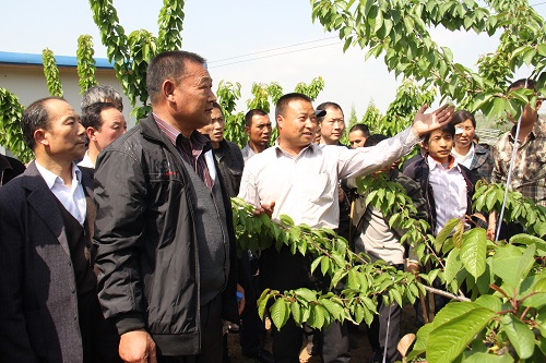 圖為培訓班學員現場學習大櫻桃栽培技術