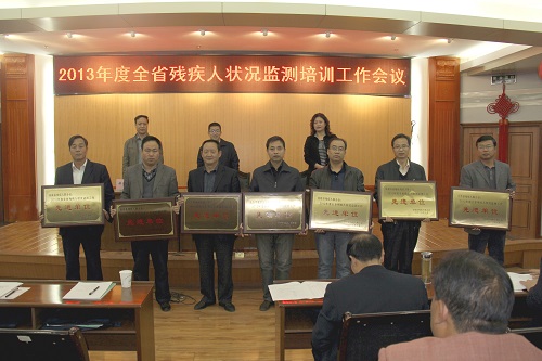 圖為會領導為2012年度全省殘疾人狀況監測工作先進單位頒獎